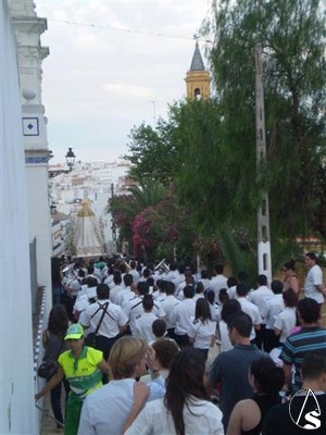 La Virgen salió pasadas las ocho de la tarde en una difícil y a su vez perfecta salida, tras la "Marcha Real" interpretada por la Banda Municipal de Arahal y a los sones y duplicados de "Encarnación Coronada" el paso dio un giro de 180 grados, nuevamente tanto la Virgen de la Oliva como la del Águila estuvieron frente a frente para despedirse.