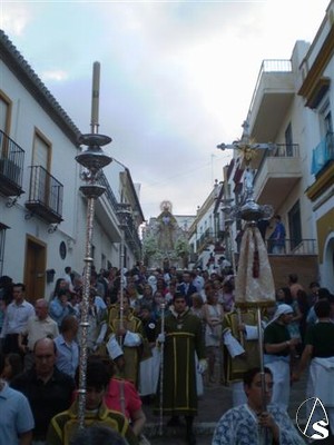 Y ese fue el día en el que celebrando el cincuentenario fundacional la Virgen de la Oliva tuvo el honor de visitar a la patrona en su casa y salir de ella sobre su paso, que gentilmente cedió su Hermandad. La patrona también iba en el paso, representada por una réplica en plata que porta la Virgen de la Oliva en la delantera de su paso de palio.