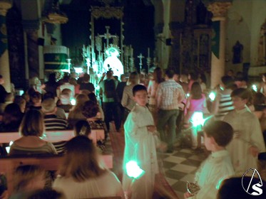 Esta procesión llamada de las “Antorchas”, donde las luces publicas del Municipio permanecieron apagadas para el tradicional Rosario a las 00,00 horas, donde la Stma. Virgen de la Salud, va sobre unas andas sencillas portado por sus hermanas y devotas que estuvo iluminada por las velas o antorchas que portaron sus hermanos.