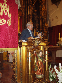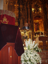 Tras la Misa de Hermandad de las 20:30, el Hermano Mayor del Buen Fin, describió a la perfección y sin dejarse ningún detalle atrás la Corona de la Virgen. Seguidamante, invitó a su diseñador, Dubé de Luque, y al Orfebre, Manuel de los Ríos, que mostrasen a los hermanos del Buen Fin la preciosa corona.