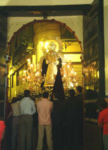 Ntra. Sra. de la Cabeza y sus marchas de marcado acento popular fue la primera en recorrer la feligresía de San Juan de la Palma, acompañada por los toques de la Cruz Roja. La visita a la Divina Pastora, que también realizó posteriormente la Divina Enfernera, convirtió la calle Amparo en la Carrera Oficial de Glorias.