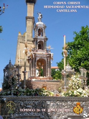 Hdad. Sacramental. La Real Archicofradía Sacramental del Santísimo Sacramento de Cantillana, celebra su fiesta principal con motivo de la Fiesta del Cuerpo y la Sangre de Nuestro Señor. Esta Archicofradía celebra este año el 450 aniversario de sus primeras reglas, cuya aprobación tuvo lugar en 1561. Durante todo el año se viene organizando numerosos actos de carácter extraordinario para conmemorar la efemérides y por este motivo la fiesta principal de la Hermandad reviste este año un carácter especial.