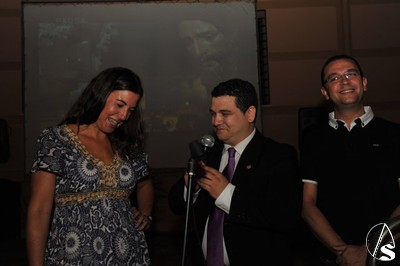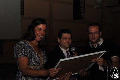 Estuvo presente la nueva delegada del distrito Nervión, María Eugenia Romero, a la que la agrupación parroquial, de manos del vicepresidente, Javier de Martos, le hizo entrega de un cuadro con los titulares al haberse enterado que el anterior gobierno del distrito se ha llevado todos los cuadros y tiene las paredes de su despacho vacías.