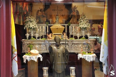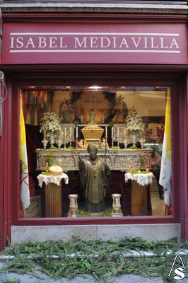 El Altar se montó en el escaparate del número 34 de la calle Francos, establecimiento de "Isabel Mediavilla", quien colaboró desinteresadamente con esta inciativa.