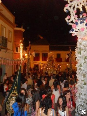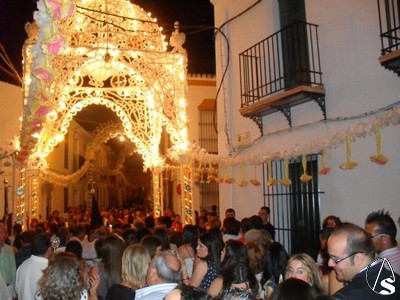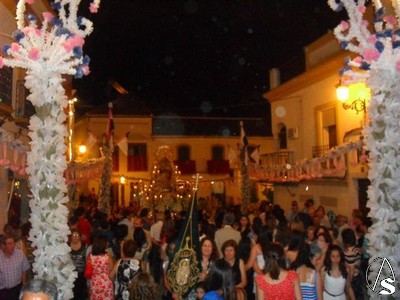 A las diez de la noche partía el Simpecado desde la Iglesia Parroquial de San Martín Obispo en santo Rosario hacia la ermita, sede canónica de la Hermandad. Una vez entrado en el templo como es habitual, a las once de la noche se produció la salida de la bendita titular en solemne procesión hacia el templo parroquial, donde presidiría desde el altar mayor la Solemnidad del Corpus Christi.