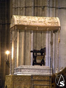 La Virgen de los Reyes, fue una donación a San Fernando de su primo Luis IX, rey de Francia, hecho que parece apoyarse en las antiquísimas zapatillas que calza la Virgen en las que se observa la flor de Lis bordada, emblema de la casa Gala.
