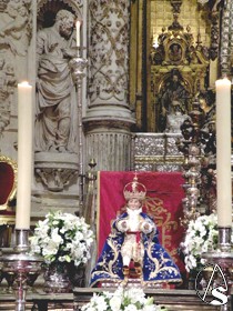 La imagen del Divino Infante, que mide 60 centímetros y aparece en la rodilla de la Virgen de forma central, es posterior a la señora.