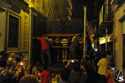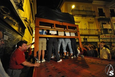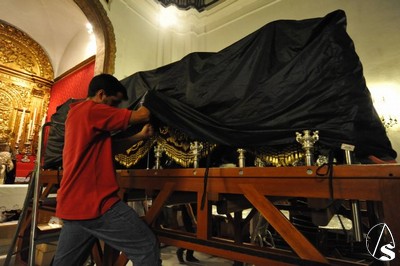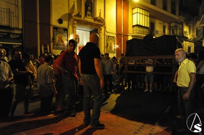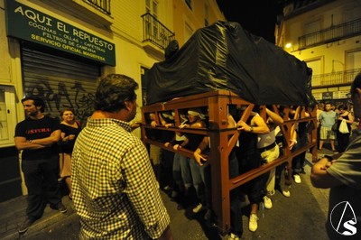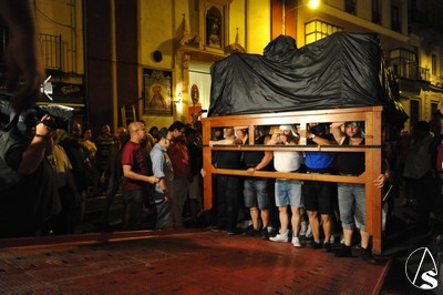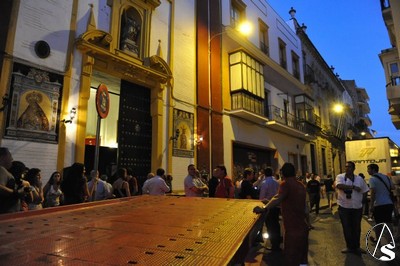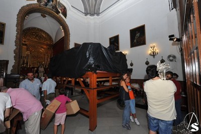 Ayer, viernes 5 de agosto, sobre las 22 horas, tuvo lugar el traslado de la parihuela del paso, con el palio montando sobre unos varales cortos cedidos por la hermandad de los Gitanos, la peana, candelabros de cola, candelería y varas e insignias.