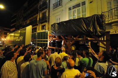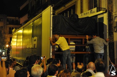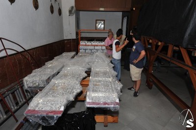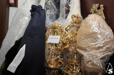 Daniel García Acevedo. El paso de palio de la Virgen de Regla, junto con el grueso de enseres, varas, etc.., están siendo trasladados hacía Madrid para la participación de la misma en las próximas Jornadas Mundiales de la Juventud , que presidirá S.S. Benedicto XVI.