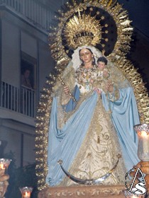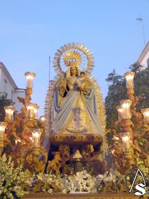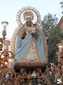 Antonio Rendón Domínguez. La Asociación Parroquial de Madre de Dios del Dulce Nombre y Santa Ángela de la Cruz, establecida canónicamente en la capilla donde recibe cultos en el colegio de la Salle Felipe Benito, recorrió las calles de la feligresía en solemne procesión, con un inmejorable sentido religioso, y con la bella imagen gloriosa de la Virgen con el niño Jesús, ambas imágenes fechada en 1995, del escultor imaginero sevillano Miguel Bejarano Moreno, que tiene su taller en la calle Guadiana nº 9 de Sevilla.