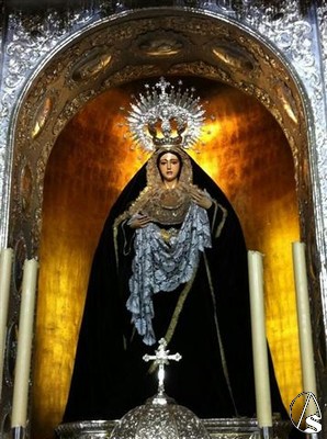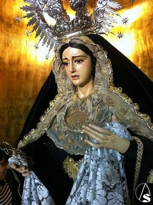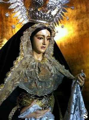 Para la ocasión, la imagen mariana está estrenando saya de terciopelo negro, donada por un grupo de hermanas de la Hermandad.