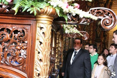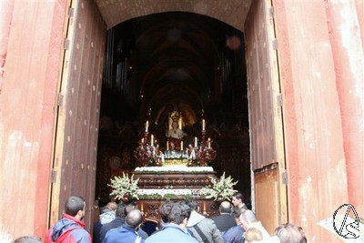 El paso que inicialmente estaba colocado junto a la capilla de la Virgen del Rosario, fue llevado por la cuadrilla de costaleros a la puerta prncipal del templo para los alli presentes pudieran contemplarlo, lamentablemente fue lo más cerca que estuvo de las calles del arrabal trianero.