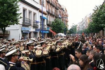Al termino del acto religioso, la banda de cornetas y tambores del Santísimo Cristo de las Tres Caidas de la hermandad de la Esperanza de Triana, ofreció un concierto a las puertas de la capilla de la calle San Jacinto.