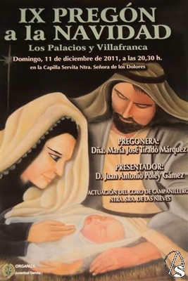 Arte Sacro. La Capilla Servita de Ntra. Sra. de los Dolores, sita en calle Abajo de la localidad de los Palacios y Villafranca, acogerá el próximo día 11 de diciembre de 2011 el IX Pregón a la navidad organizado por la Juventud Servita de la misma hermandad.