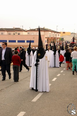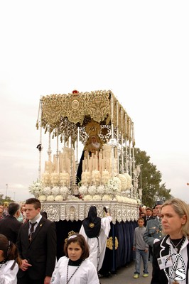 Luis M. Fernández. El pasado Martes Santo, la hermandad de Nuestro Padre Jesús de la Pasión y Nuestra Madre y Señora del Amparo, del barrio de Las Portadas en Dos Hermanas, hizo su estación de penitencia. La cofradía estuvo en todo momento acompañada por las gentes de su barrio y tiene como momento curioso el cruce de la Nacional IV. Ya en el centro de la localidad nazarena y cuando estaba recorriendo la carrera oficial, en la que se encuentra la Parroquia de Santa María Magdalena, le sorprendió la lluvia y, al no poder refugiarse en la citada parroquia, lo hizo en la Capilla del Gran Poder, de donde regresó a su templo entrada la madrugada. Les ofrecemos algunas fotos de la cofradía en su camino de ida.