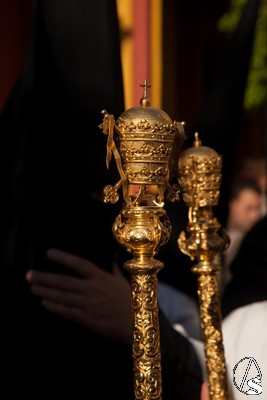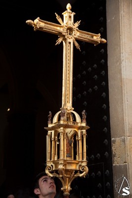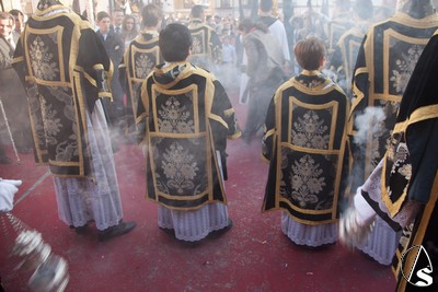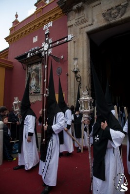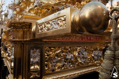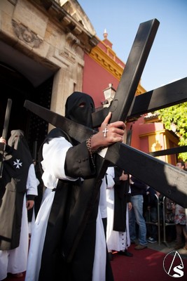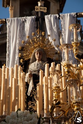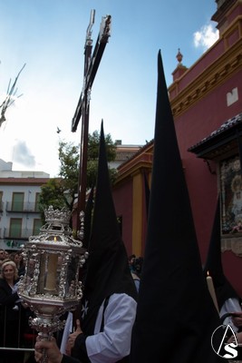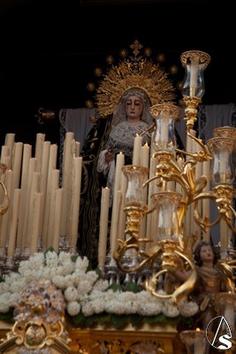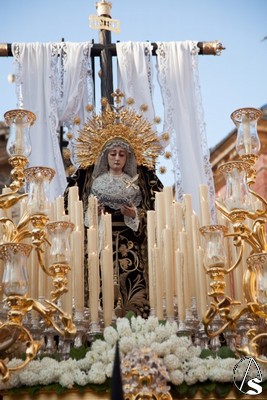 Fco. de Borja Cordero Murillo. En la tarde del Viernes Santo en la Plaza de San Lorenzo, nos irrumpe después de que Cristo entregara su vida en el patíbulo de forma ignominiosa, la Hermandad de la Soledad de San Lorenzo. Después que los nazarenos anuncien su llegada, emana de su Parroquia la Virgen en su paso neobarroco. La Soledad camina sobre una nube de fuego entre flores silvestres blancas y lirios morados. María no comprende el Sacrificio de Jesús. Lleva todo en sus mano resumido portando la corona de Espina, En su pecherín lleva un puñal que le traspasa el corazón, que evoca espontáneamente el misterios de sus dolores, los siete tradicionales, cuyo culmen  es el calvario. A su vuelta El llanto concatena los cantos de amor por seguidilla y soleá a la Dolorosa de San Lorenzo, que se refugia en Sevilla con su llanto de amor. El cofrade silente le reza y golpea la puerta de la Reina de San Lorenzo poniendo de forma emocionada, “Broche de Oro a la Semana Mayor Hispalense”.