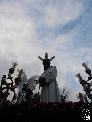 El paso de misterio del Cristo del Soberano Poder en las Negaciones de San Pedro estuvo acompañado musicalmente por la Banda de Cornetas y Tambores de Las Cigarreras, mientras que la Virgen de la Humillación, bajo su palio liso de terciopelo azul, por la Banda de Música de la Cruz Roja.