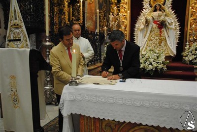 Con el Abad de la cofradía al frente, Ricardo Saez de Heredía, se llevó a cabo un acto de confraternización entre esta cofradía y la hermandad de Nuestra Señora de las Nieves de Sevilla.
