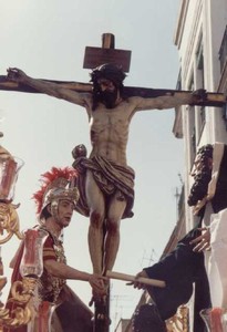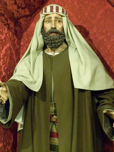 Son José de Arimatea, con el papiro donde se refleja el permiso para poder retirar el cuerpo de Jesús y Nicodemo, obras de Luis Álvarez Duarte en 1972.