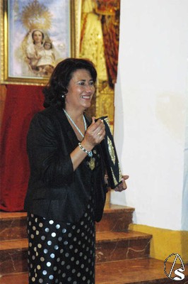 La noticia del nombramiento de María Angeles fue recibida por un fuerte aplauso de los presentes en la ceremonia, indicativo del indudable cariño que despierta en el seno de la Hermandad, a la que está muy vinculada desde su juventud, pues en los años ochenta perteneció a la Junta de Gobierno, y después, contrajo matrimonio con el entonces Hermano Mayor, D. Pablo Pérez Giráldez. Desde aquí darle la enhorabuena y desearle la mejor de las suertes para el próximo 30 de septiembre de 2012.