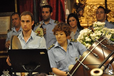 En dicho acto intervino la Banda de música de la Cruz Roja, que interpretó distintas marchas procesionales, culminando con la composición dedicada a la Virgen del Rosario de San Julián, obra de Javier Alonso Barba, destacando las labores de la percusionista japonesa Yukiko. La presentación del acto estuvo a cargo del Diputado Mayor de gobierno, José Manuel Arreciado Carreras.