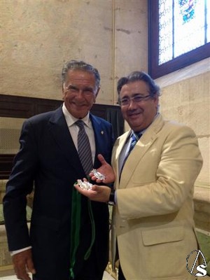 Arte Sacro. En la tarde del lunes, el Alcalde de Sevilla Juan Ignacio Zoido y el Hermano Mayor del Rocío de Triana Manuel Alcantarilla mantuvieron una reunión en el Ayuntamiento para tratar varios temas de interés, entre otros y quizás el más significativo, el de la concesión de la medalla de oro de la ciudad a la corporación rociera más antigua de Sevilla, por su 200 aniversario fundacional que cumplirá el próximo año 2013.