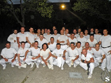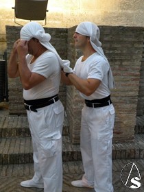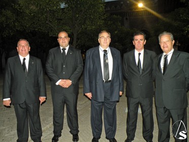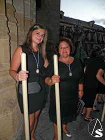 Eduardo Bejarano Uceda, recuperado de una operación de pies, tercera generación, de esta familia de capataces, que coge el martillo del paso de la señora, que fue quien dirigió la cuadrilla de costalero (25 hombres), que portan las trabajaderas del trono de la Señora.