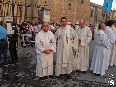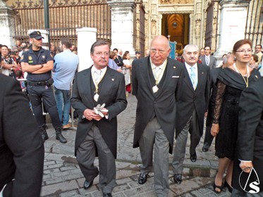 Tras el paso de la Virgen figuraba el arzobispo de Sevilla monseñor Juan José Asenjo, el obispo auxiliar Santiago Gómez Sierra, y el deán de la Catedral Francisco Ortiz Gómez.