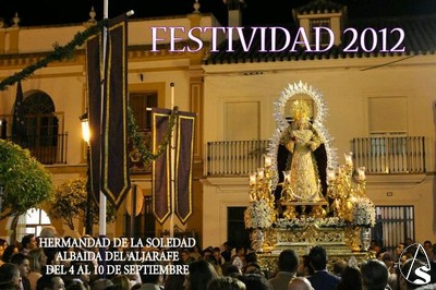 A las 20:00 horas TRIUNFAL SALIDA PROCESIONAL DE GLORIA DE MARÍA SANTÍSIMA DE LOS DOLORES EN SU SOLEDAD por las engalanadas calles del pueblo de Albaida del Aljarafe, acompañada de la Sociedad Filarmónica Nuestra Señora del Carmen de Salteras y por todos sus hijos soleanos. A la llegada de la procesión al lugar conocido popularmente como “el cantillo” se entonará el Himno de la Hermandad “a tus pies van los soleanos”, donde la Santísima Virgen recibirá una copiosa lluvia de pétalos de rosa. Sobre la media noche, María Santísima de los Dolores en su Soledad volverá a entrar en el Oratorio de la Hermandad a los sones de la marcha real, el repique de campanas y bajo el estruendo de centenares de cohetes.