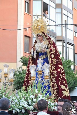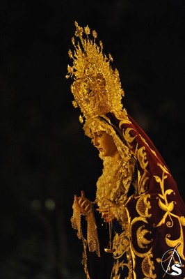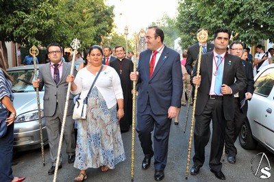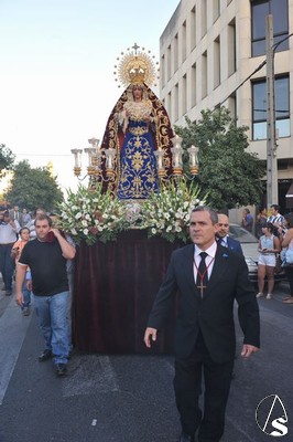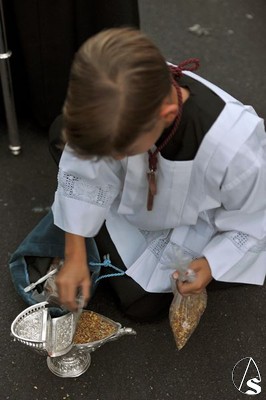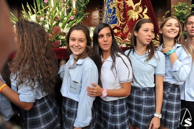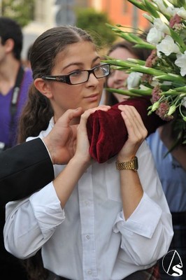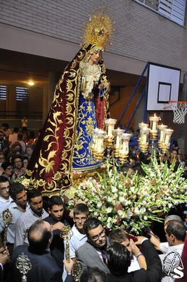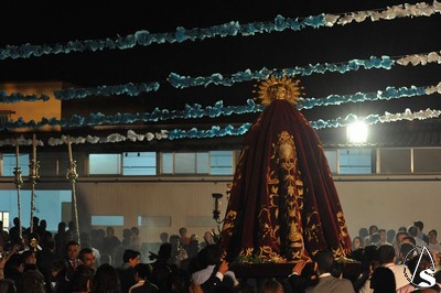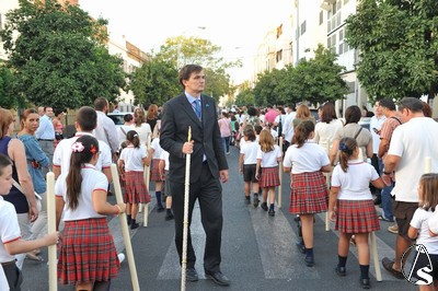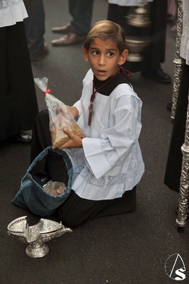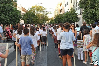 Por tal motivo fue acompañada durante todo el recorrido por un gran número de niños que portaron cirios. Como dato curioso indicamos que no hubo para todos al ser las previsiones inferiores al número de participantes. También los niños fueron invitados a portar las andas mandadas por el capataz Ricardo Almansa y su equipo de auxiliares.