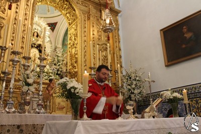 D. Antonio ya había presidido los cultos de regla que durante la primera quincena de septiembre se celebraron en honor a la Virgen de Consolación en la Parroquia de S. Martín de Tours, pero era ahora cuando lo hacía por primera vez en la Ermita. Para la ocasión la Santísima Virgen ya se encontraba en su Camarín tras las pasadas fiestas luciendo el manto bordado en oro a realce sobre terciopelo azul y una de las sayas en tisú de plata bordada en oro que componen el magnífico ajuar de la Señora. La celebración estuvo preparada por el Grupo de Liturgia de la Corporación y amenizada por el Coro de la Hermandad. Del mismo modo, y a petición del párroco, la celebración de la Eucaristía fue retransmitida en directo por el Canal de televisión local. Les ofrecemos algunas imágenes de la primera Misa de D. Antonio en la Sede canónica de la Hermandad de Consolación.