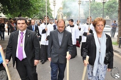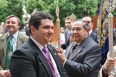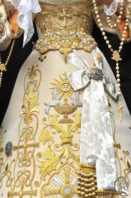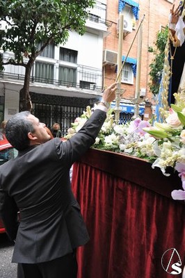 Ricardo Almansa iba al mando de los portadores y portadoras de las andas con la Stma. Virgen del Rosario que lucía las últimas donaciones efectuadas, consistentes en el puñal, el pañuelo y una condecoración militar, del que les daremos más detalles en una noticia que saldrá publicada en esta web en los próximos días.