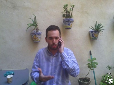 La foto de la derecha corresponde al momento en que Francisco Javier era llamado por el Consejo para darle la noticia. En ese momento se encontraba en su Hermanda de la Divina Pastora y Santa Marina, una de las que es hermano.