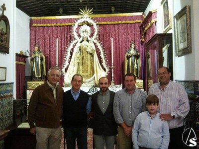 En la fotografía, ante la Capilla del Carmen del Santo Ángel, representantes del Carmen Coronada de Córdoba y de la Banda del Carmen de Salteras. Manu Guzmán