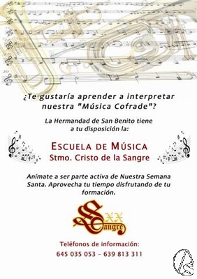 Arte Sacro. La banda de cornetas y tambores Stmo. Cristo de la Sangre, de la hermandad de San Benito, vuelve a contar con una escuela de música procesional que se puso en marcha este curso, y dirigida por Romualdo Puelles.