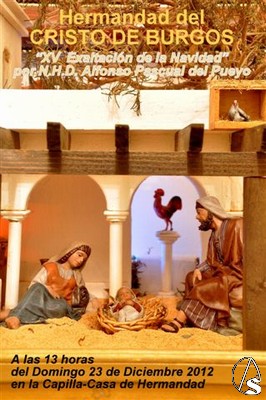 Arte Sacro. El domingo 23 de diciembre, a las 13 horas y en la capilla casa Hermandad, el hermano Alfonso Pascual del Pueyo pronunciará la XV Exaltación de la Navidad de la Hermandad del Stmo. Cristo de Burgos y Madre de Dios de la Palma, que será presentado por el anterior Exaltador, también hermano, José María Montaña Ramonet y, durante el acto, el Coro Joven de la Parroquia de la Sagrada Familia de Sevilla interpretará varios villancicos y composiciones navideñas.