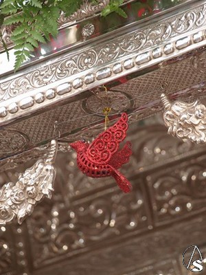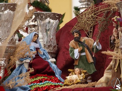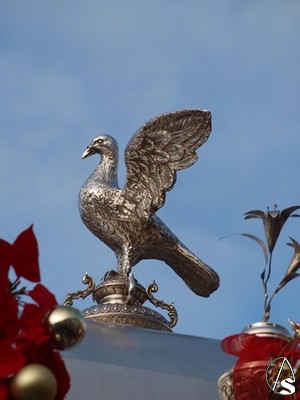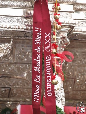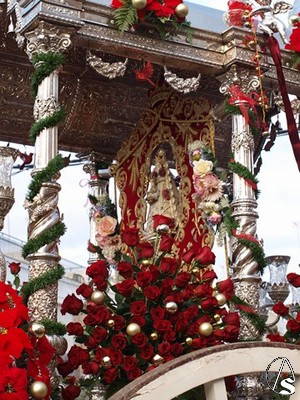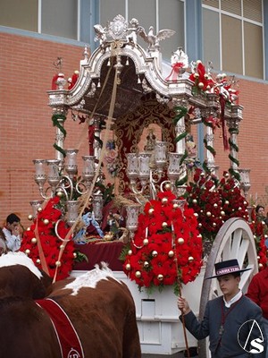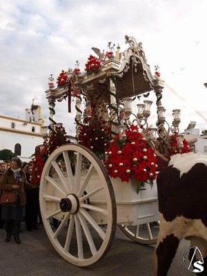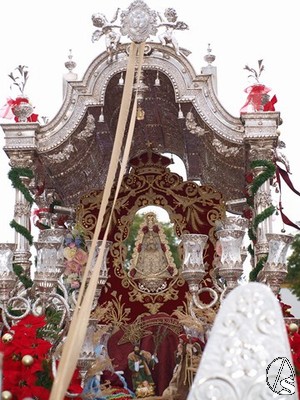 La Carreta de la Virgen estuvo exornada con la tradicional flor de pascua en las esquinas y rosas rojas en las jarras laterales. En estas flores se pudieron observar las bolas que se colocan en el árbol de Navidad. En la delantera portó un bello nacimiento, de esta manera la Hermandad no se olvidó de las fechas en la que nos encontramos.