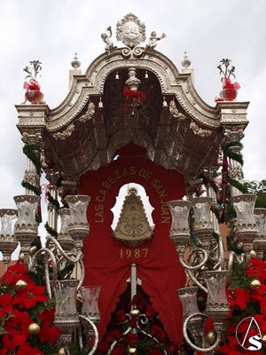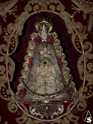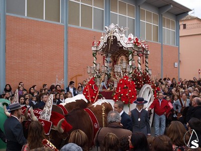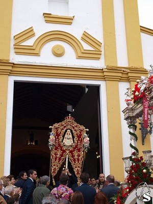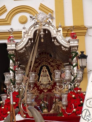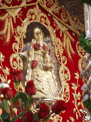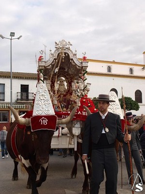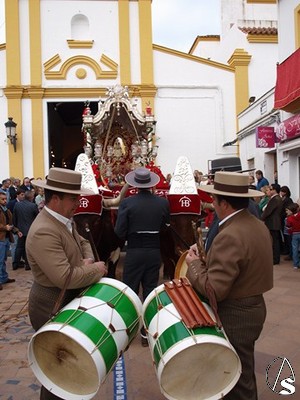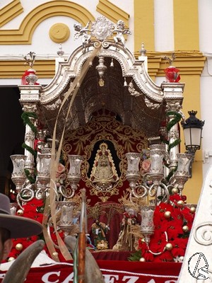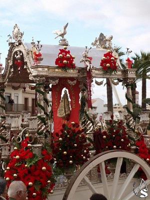 Pasadas las cuatro de la tarde el Simpecado, bordado en hilo de oro sobre terciopelo rojo enmarcando a la Santísima Virgen del Rocío, con cara y manos de marfil, abandonaba su sede canónica, la Iglesia de San Roque, para recorrer en bella carreta de plata las calles de Las Cabezas de San Juan entre un ambiente rociero y navideño.