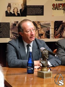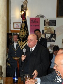 En la mesa presidencial estuvieron hablando sobre las anécdotas y vivencias, con el difunto tabernero, los hermanos cofrades; el Hermano Mayor de la Redención José Ángel Moncayo Través, el Hermano Mayor del Museo Alfonso Gentil Baldrich, el Hermano Mayor de los Gitanos José Moreno Vega y el Presidente de la Asociación Miguel Ángel Pérez de los Santos.