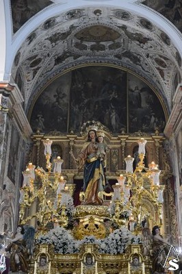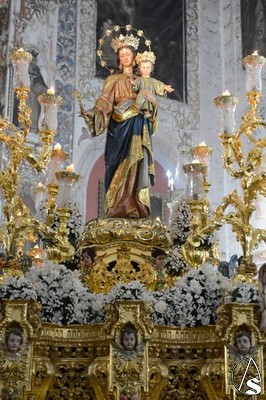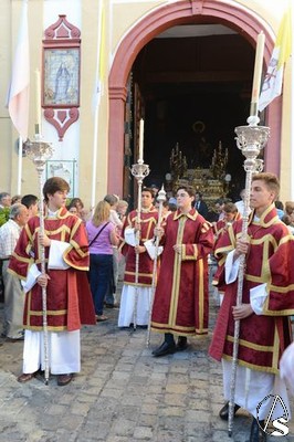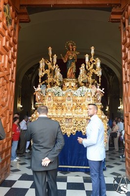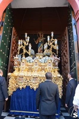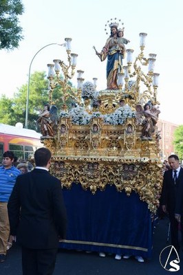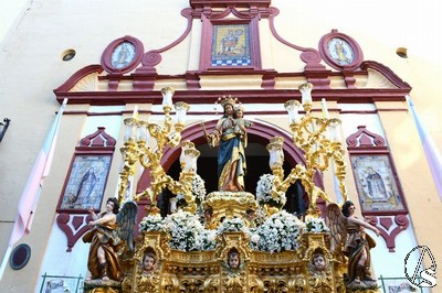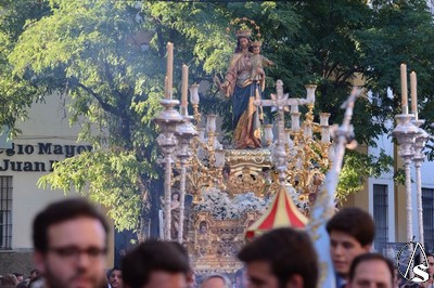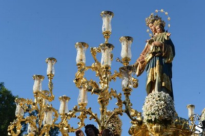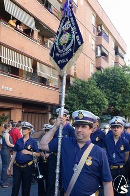 En el segundo, la Stma. Virgen de María Auxiliadora, rodeada por los alumnos y devotos de esta imagen y de esta advocación, que son muchos en nuestra ciudad. Y es que cuando se estudia en un colegio salesiano, todo el mundo sale con un cariño y devoción a María Auxiliadora, que ya no lo olvidaran nunca. El acompañamiento musical estuvo a cargo de la banda de música municipal de Aznalcollar.