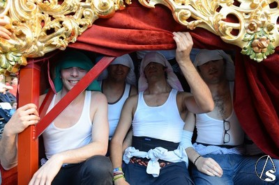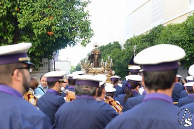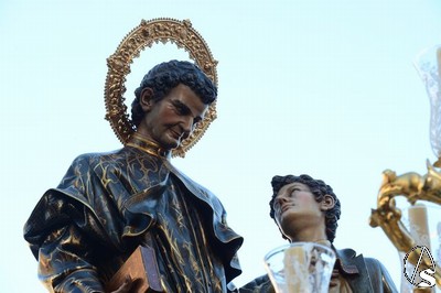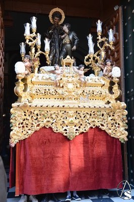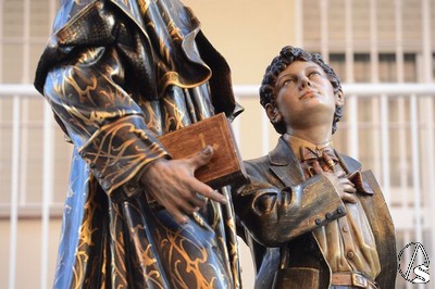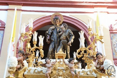 Esta procesión tiene dos pasos. En el primero van las imágenes de San Juan Bosco y Santo Domingo Savio, a los sones de la agrupación musical Ntro. P. Jesús de la Salud de la hermandad de los Gitanos.