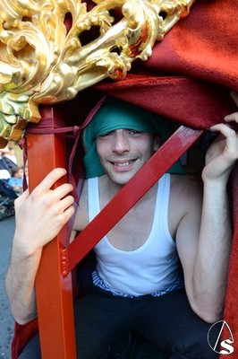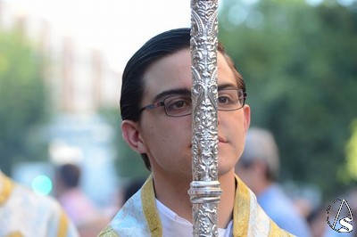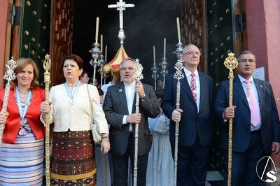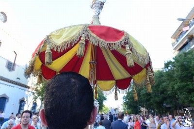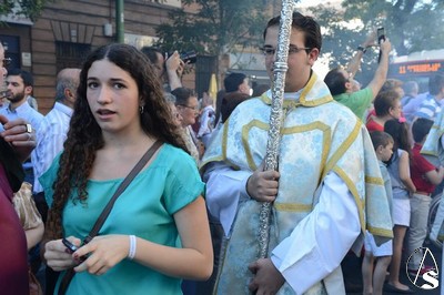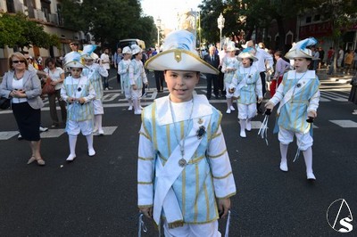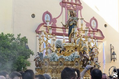 La procesión comenzó a salir a las 19 horas y en la misma participan todos los estamentos del Colegio de los Salesianos, además de una representación de la vecina hermandad de la Trinidad con su hermano mayor, Félix Lerma, a unos días de las elecciones donde dejará este cargo.