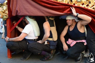 El cortejo se encaminó, después de la salida, hacia el colegio de la calle Salesianos y el santuario de la hermandad de los Gitanos, donde les esperaba una representación de la corporación de la Madrugá, encabezada por su hermano mayor, José Moreno.