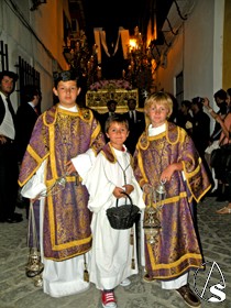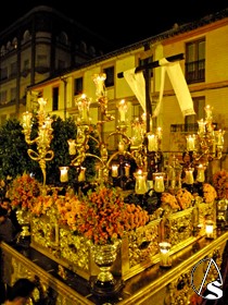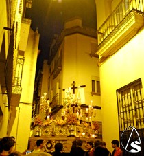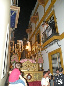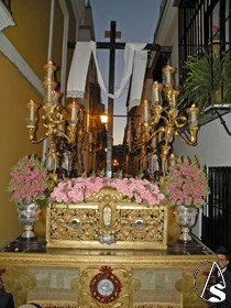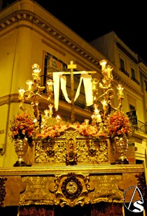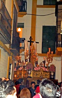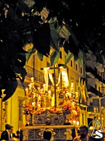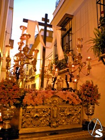 El exorno del paso de la Cruz estuvo compuesto por flores antirreno y claveles rosas.