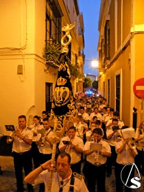 La responsabilidad del martillo recayó sobre Javier Heredia y su equipo de capataces, que llevaron el paso de la Cruz de Mayo al son de la magnífica Banda de la Agrupación Musical de Muchachos de Consolación de la localidad sevillana de Utrera.