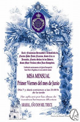 Fran Granado. La Real y Franciscana Hermandad y Archicofradía de Nuestro Padre Jesús Nazareno, Santa Cruz en Jerusalén, Nuestra Señora de los Dolores, Santa Mujer Verónica y San Juan Evangelista, establecida canónicamente en la Parroquia Santa María Magdalena realizará en el día de hoy 7de junio la tradicional Misa Mensual de hermanos como así lo dicen sus reglas. Siendo el primer viernes del mes y empezará a las 21:00 horas.