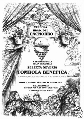Arte Sacro. La Hermandad del Cachorro celebrará los días jueves 6, viernes 7 y sábado 8 de junio de 2013 su tradicional Verbena y Tómbola benéficas, destinadas a recaudar fondos para la bolsa de caridad de la hermandad.