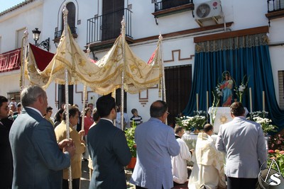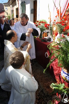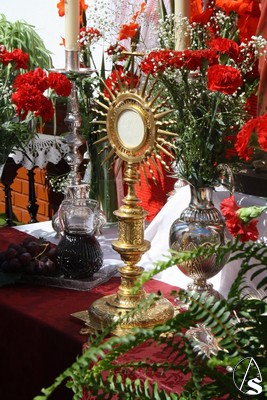 A su término, cuando el reloj marcaba las 10,30h de la mañana, daba comienzo la solemne procesión eucarística que volvió a recorrer las calles de este viejo pueblo de nombre y origen árabe engalanadas con amaranto y romero y con muchos altares levantados por la devoción de los vecinos a Cristo Presente en la Eucaristía.