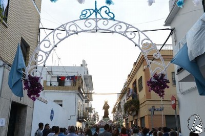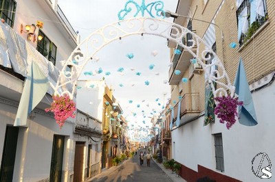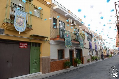 La calle Torre del Campo fue adornada y engalanada para recibir al Inmaculado Corazón en su itinerario de regreso a su parroquia.