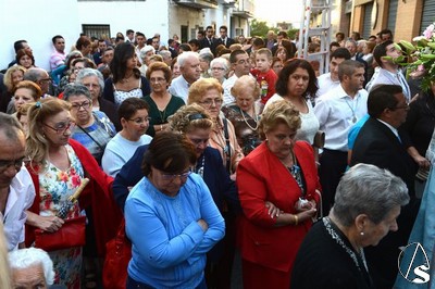 La lluvia hizo acto de presencia y esto hizo que la salida se retrasara unos minutos de lo inicialmente previsto, las 20,30 horas. Sin embargo ello no fue óbice para que sus devotos y vecinos no fueran a verla.